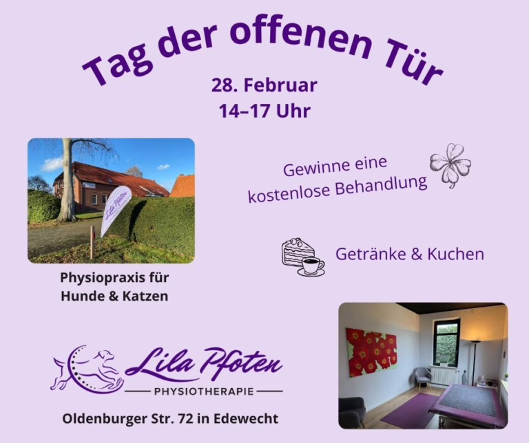 🐾 Tag der offenen Tür bei Hunde- und Katzenphysio Lila Pfoten 🐾 Ich öffne meine Türen und lade euch herzlich ein, meine…